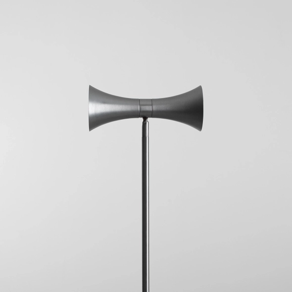 KIBO FLOOR 2 STEEL ist eine Stehleuchte von Nikodem Szpunar, die skulpturale Formgebung mit der industriellen Authentizität des Materials vereint. Die Oberfläche aus rohem Stahl unterstreicht den technisch-modernen Charakter der Leuchte und passt perfekt zu Lofts, minimalistischen Interieurs und Einrichtungen mit Beton, Glas und Schwarz. Der doppelte Schirm erzeugt eine markante Silhouette, während die Stahloberfläche die Details und Linien des Designs hervorhebt.