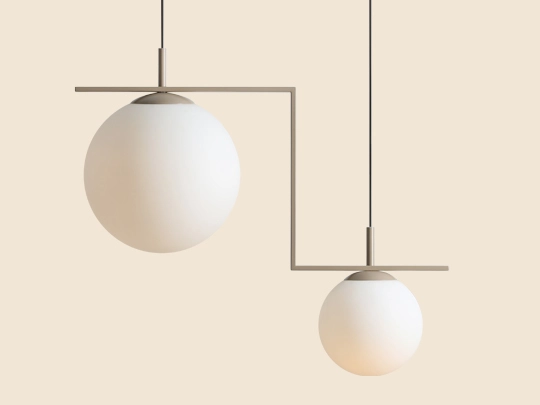 Nowoczesna i elegancka lampa wisząca Zac łączy geometryczną formę z subtelnością dwóch kul – jedna o średnicy 30 cm, wykończona w białym macie, druga o średnicy 20 cm, przezroczysta. Dostępna jest w dwóch wariantach kolorystycznych: białym i czarnym, a na życzenie klienta większa kula może być również wykonana w białym macie. Lampa doskonale wpisuje się w styl nowoczesnych wnętrz, szczególnie w połączeniu z lampą stojącą z tej samej kolekcji.