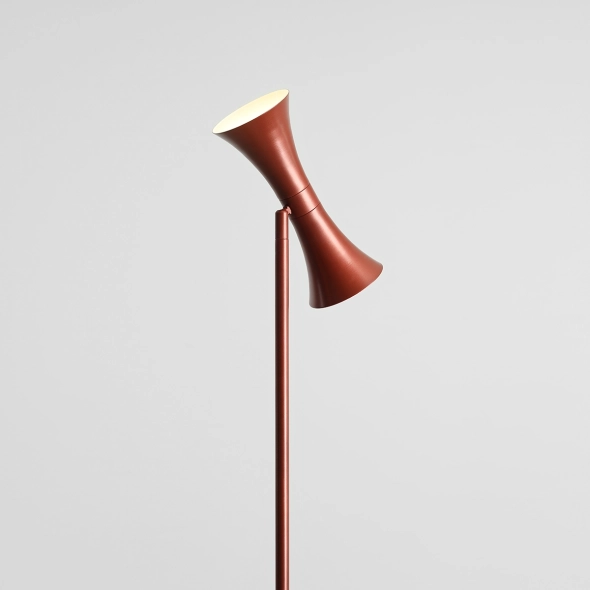 Dodatkowym atutem jest ruchomy klosz, który umożliwia precyzyjne skierowanie strumienia światła. Całość wykończona jest w miedziano - ceglanym kolorze o błyszczącej powierzchni, nadającym lampie lekkości i eleganckiego, współczesnego wyrazu.