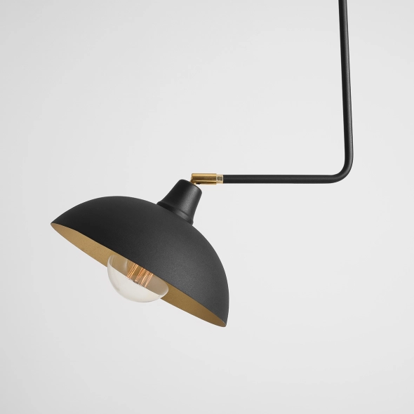 Pojedynczy, dłuższy plafon ESPACE to funkcjonalna i niebanalna propozycja doświetlenia przestrzeni. Charakterystycznym elementem tej lampy jest płaski klosz, który dzięki przegubowi w kolorze złotym możemy skierować w dowolnym kierunku. Plafon znakomicie prezentuje się w sąsiedztwie krótszych modeli z tej samej serii.