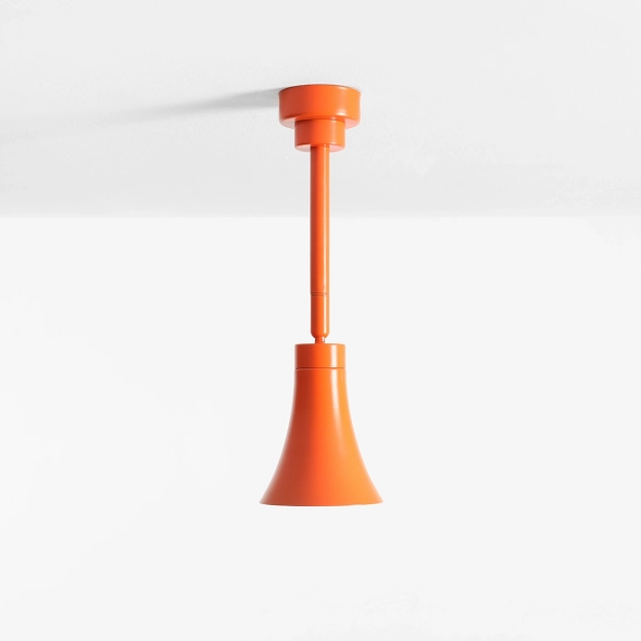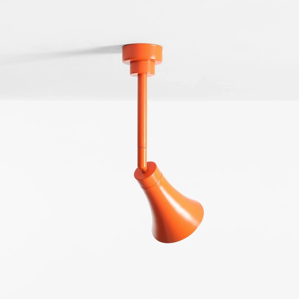 KIBO CEILING FLARE è la versione più espressiva delle lampade da soffitto della collezione Kibo. L'intenso colore arancione, abbinato a una forma minimalista e scultorea, crea un accento audace e di design. Ispirato ai tunnel cosmici, il paralume si apre delicatamente, emettendo una luce soffusa ed enfatizzando la geometria della lampada. Perfetta per interni che richiedono energia, colore e un design distintivo.