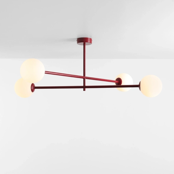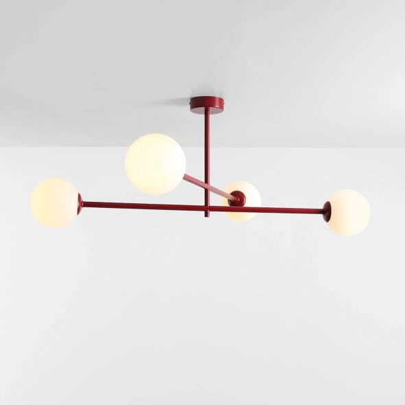 La lampada da soffitto Pinne è un apparecchio di illuminazione moderno e funzionale, progettato per interni con soffitti bassi. Il suo design compatto non appesantisce lo spazio e la sua forma ampia permette un'illuminazione uniforme di tutta la stanza, creando un'atmosfera piacevole. Ogni braccio della lampada è sormontato da un'elegante sfera in vetro satinato, che ospita una lampadina E14 sostituibile. Questo rende la lampada non solo esteticamente gradevole, ma anche pratica, consentendo una facile sostituzione della lampadina e la regolazione del colore della luce in base alle proprie esigenze. La splendida tonalità bordeaux rende la lampada Pinne un complemento perfetto sia per interni moderni che più classici.