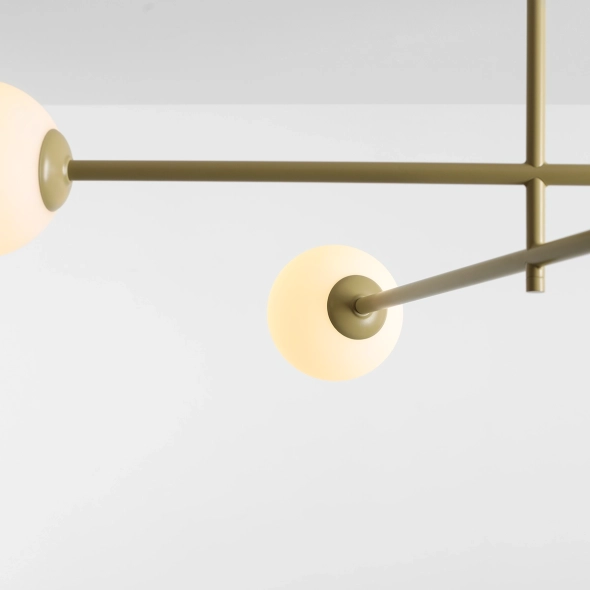 Lampa sufitowa Pinne to nowoczesne i funkcjonalne oświetlenie stworzone z myślą o niewysokich wnętrzach. Jej niska konstrukcja nie przytłacza przestrzeni, a rozłożysta forma pozwala równomiernie rozświetlić cały pokój, wprowadzając przyjemną atmosferę. Każde ramię lampy zakończone jest elegancką, mleczną szklaną kulą, wewnątrz której znajduje się wymienne źródło światła E14. Dzięki temu lampa jest nie tylko estetyczna, ale i praktyczna – umożliwia łatwą wymianę żarówki oraz dopasowanie barwy światła do własnych potrzeb. Subtelny, pistacjowy kolorsprawia, że lampa Pinne doskonale komponuje się zarówno z nowoczesnymi, jak i bardziej klasycznymi aranżacjami.
