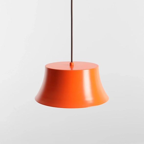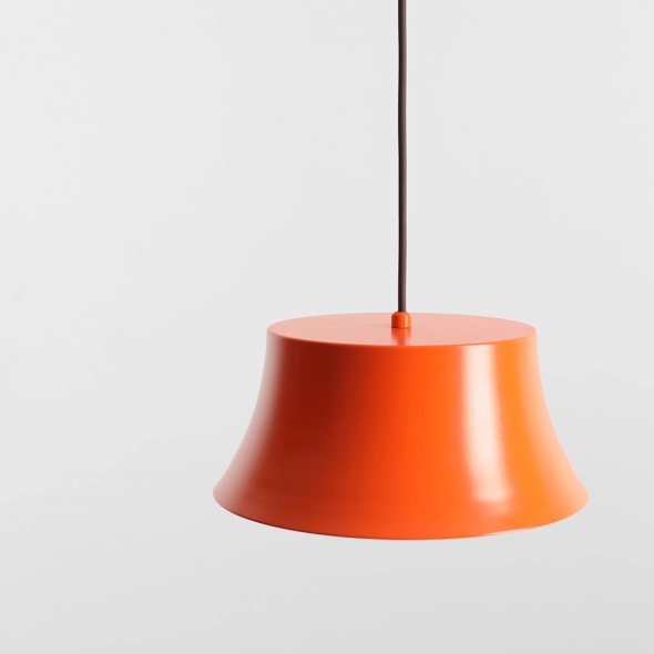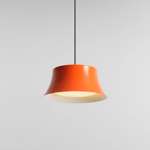 Lampa wisząca Kibo Flare (proj. Nikodem Szpunar) to energetyczna interpretacja minimalistycznej formy, w której kolor staje się pełnoprawnym elementem projektu. Klosz malowany proszkowo w intensywnym pomarańczu Flare (RAL 2009) wyróżnia się jednolitą, trwałą powierzchnią, a jego szeroka, prosta bryła (25 cm) świetnie porządkuje kompozycję wnętrza. Białe wnętrze klosza skutecznie odbija światło, zapewniając komfortowe, równomierne oświetlenie i przyjemną atmosferę. Lampa zawieszona jest na regulowanym przewodzie, co ułatwia dopasowanie wysokości nad stołem, wyspą kuchenną lub w strefie wypoczynku.