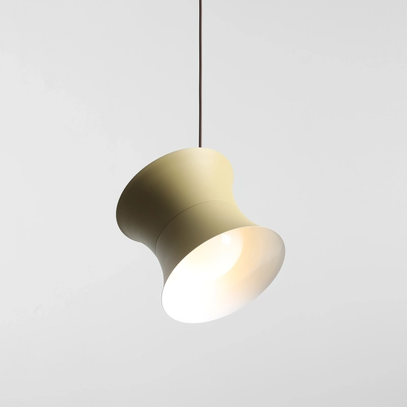 Metalowy klosz o średnicy 25 cm w pistacjowym kolorze skrywa biały, połyskujący klosz wewnętrzny o średnicy 16 cm, który równomiernie rozprasza światło i nadaje mu miękki charakter. Geometryczna forma i dopracowane proporcje nawiązują do estetyki retro w nowoczesnym wydaniu.