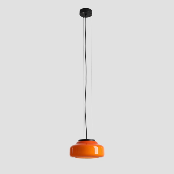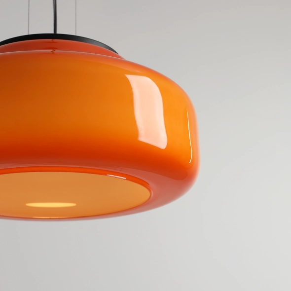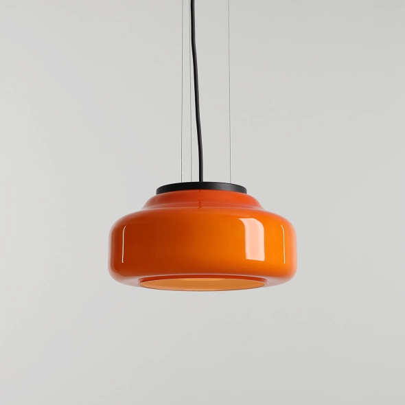 Nowa lampa wisząca ze szkła opalowego BONBON II M ORANGE, autorstwa Mikołaja Nicera (Nicer Design), zachwyca lekką formą i intensywnym, pomarańczowym kolorem. Jej minimalistyczna oprawa podkreśla ciepły blask szkła, które po włączeniu światła zyskuje głębię i miękki, przytulny ton.