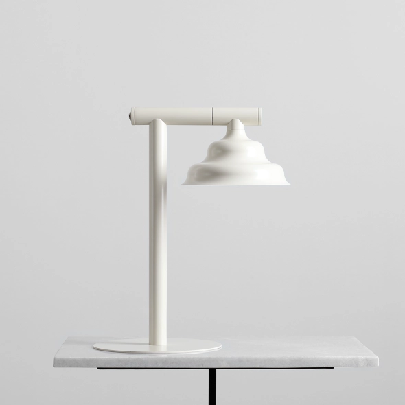 Lampa biurkowa Fala w pięknym odcieniu kremu to oprawa o ciekawej konstrukcji, której bryła, staranne łączenia, proste kąty i falisty kształt klosza czynią ją wyjątkowo estetycznym dodatkiem wnętrza. Dodatkowym atutem jest funkcjonalność lampki, która wynika z zastosowania ruchomego elementu oprawy utrzymującego klosz, którego położeniem można sterować. Projekt jest dziełem Nikodema Szpunara, a wykonanie to w całości rzemiosło Artery.