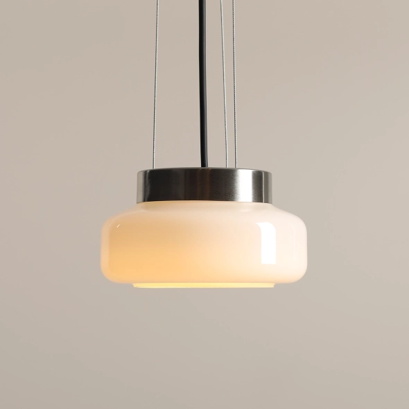 Mała lampa wisząca ze szkła w subtelnym, białym kolorze BONBON S ALMOND to propozycja autorstwa Mikołaja Nicera, która wnosi świeżość i nowoczesny design do każdego wnętrza. Inspirowana włoskimi landrynkami, lampa łączy minimalistyczną formę z wyrazistym kolorem, tworząc subtelny, ale jednocześnie intrygujący akcent dekoracyjny. Wykonana z wysokiej jakości szkła, idealnie wpisuje się w najnowsze trendy wnętrzarskie, doskonale sprawdzając się zarówno w przestrzeniach mieszkalnych, jak i komercyjnych. Model BONBON S ALMOND doda wnętrzom stylu, lekkości i niebanalnego uroku. Lampy wiszące świetnie sprawdzą się zawieszone w rzędach na suficie, tworząc efektowną i ciekawą kompozycję świetlną.