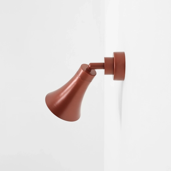 KIBO WALL RUSTY to minimalistyczny kinkiet ścienny w ceglanym, rdzawym odcieniu, inspirowanym naturalnymi barwami materii. Jego rzeźbiarska forma, oparta na precyzyjnym promieniu klosza, subtelnie prowadzi światło, tworząc ciepły i nastrojowy efekt. Projekt Nikodema Szpunara doskonale wpisuje się w estetykę nowoczesnych, industrialnych i eklektycznych wnętrz, w których kolor staje się ważnym elementem kompozycji. Dzięki ruchomemu przegubowi, kąt padania światła można dostosować do własnych potrzeb. Lampa sprzedawana jest w zestawie z źródłem światła.