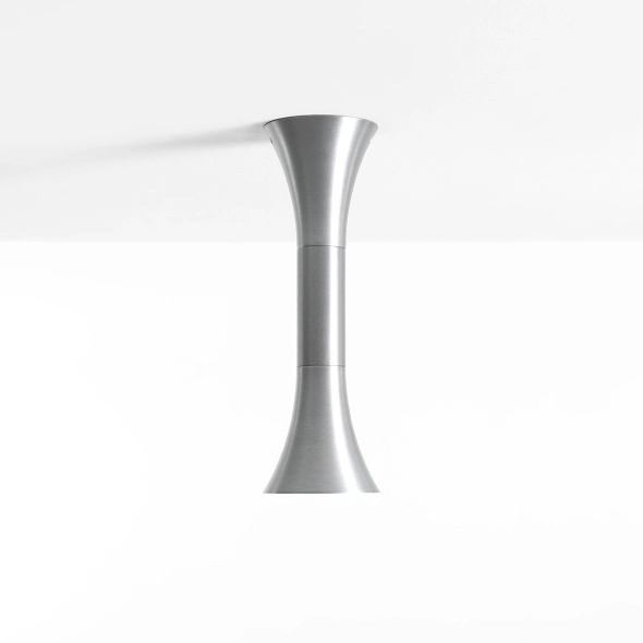 Kibo Ceiling Steel M (proj. Nikodem Szpunar) to plafon, który łączy dyscyplinę minimalistycznej formy z surową szlachetnością stali. Naturalne wykończenie podkreśla geometryczną bryłę i dodaje wnętrzu nowoczesnej, industrialnej pewności - świetnie współgra z betonem, kamieniem, jasnymi tynkami i drewnem. Stalowy klosz zachwyca czystością materiału, a charakterystyczne rozszerzenie ku dołowi prowadzi światło w sposób kontrolowany i przyjemny, bez efektu olśnienia.