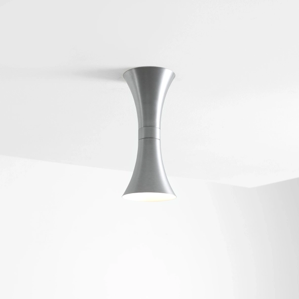 Kibo Ceiling Steel S (proj. Nikodem Szpunar) to kompaktowy plafon, który działa jak dopracowany detal - niewielki format, ale zdecydowana obecność. Surowa stal podkreśla geometrię oprawy i wnosi do wnętrza autentyczną, materialną głębię. Klosz delikatnie otwierający się ku dołowi kieruje strumień światła w sposób miękki i uporządkowany, tworząc komfortową atmosferę bez nieprzyjemnego olśnienia.