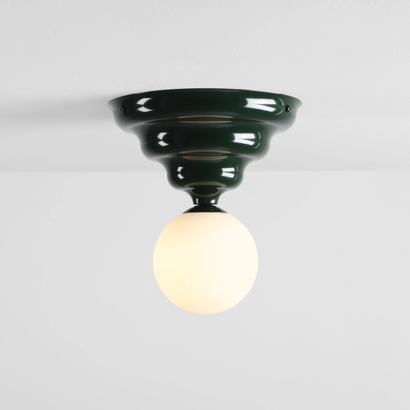 Głęboka zieleń kolekcji FALA przywołuje skojarzenia z lasem, spokojem i równowagą. Świetnie współgra z ciemnym drewnem, złotymi dodatkami oraz naturalnymi tkaninami! Lampa - czy to na suficie, czy na ścianie - działa jak wyrazisty, a zarazem szlachetny akcent w jednym z najmodniejszych kolorów w polskim designie. Mleczny klosz subtelnie rozświetla przestrzeń, nie dominując jej. Doskonały wybór do gabinetów, salonów i sypialni!