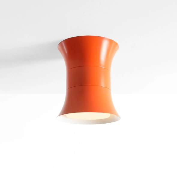 Kibo Flare M to najbardziej uniwersalna odsłona energetycznego pomarańczu Flare - odważna, ale uporządkowana. Szeroka, zwarta bryła podkreśla geometrię projektu i daje wrażenie dopracowanego obiektu, nie „zwykłej lampy”. Otwarcie klosza ku dołowi prowadzi światło miękko i komfortowo, dzięki czemu barwa robi wrażenie, ale nie męczy.