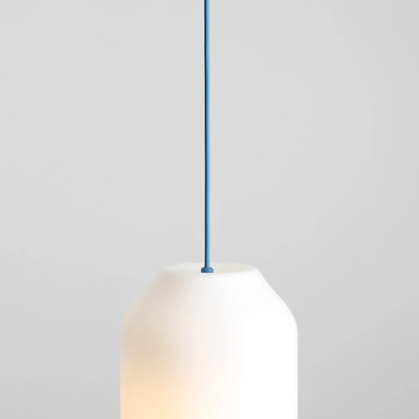 • Średnia, minimalistyczna lampa wisząca z błękitnym kablem FLASK SAPPHIRE M proj. Mikołaj Nicer (Nicer Design)
