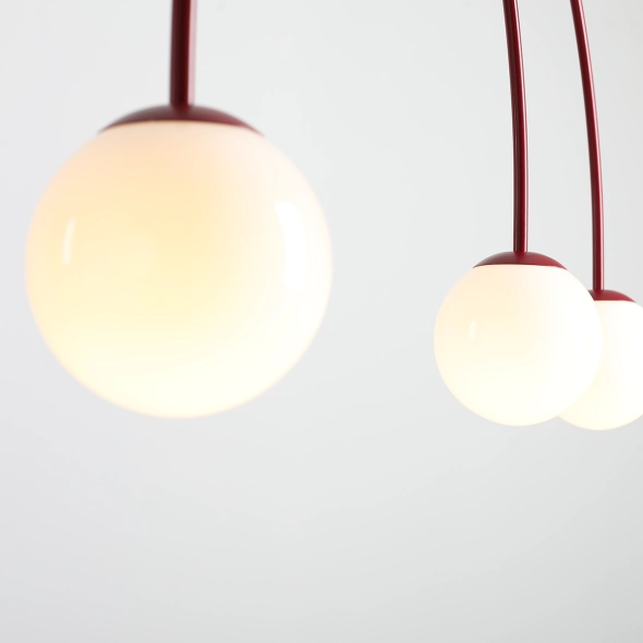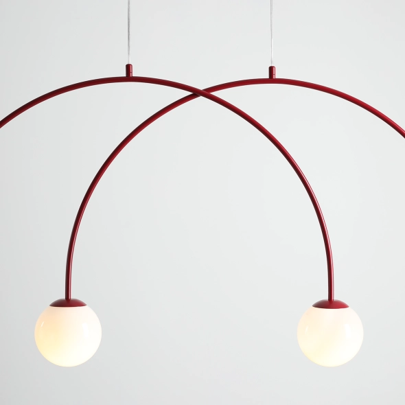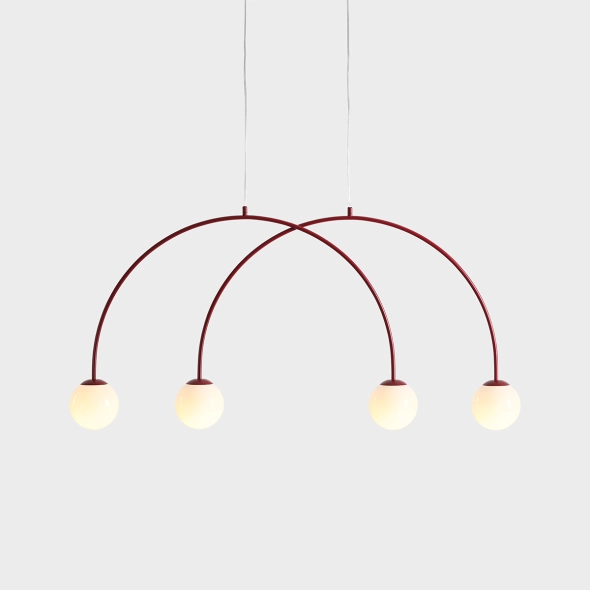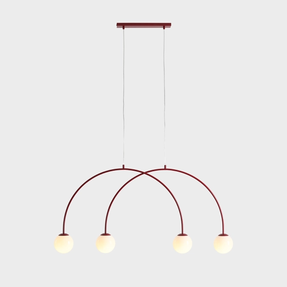 Nieszablonowa i efektowna lampa wisząca Una 4 Red Wine w satynowym wykończeniu zachwyca modnym motywem łuku oraz głębokim, szlachetnym kolorem. Odcień bordo nadaje wnętrzu elegancji i wyrazistości, dzięki czemu lampa staje się centralnym punktem aranżacji. Białe klosze o średnicy 14 cm subtelnie rozpraszają światło, tworząc przytulny i nastrojowy klimat. Model o imponującej szerokości 130 cm (z możliwością regulacji wysokości) doskonale sprawdzi się nad stołem w jadalni, w przestronnym salonie czy w stylowej sypialni, podkreślając charakter wnętrza.