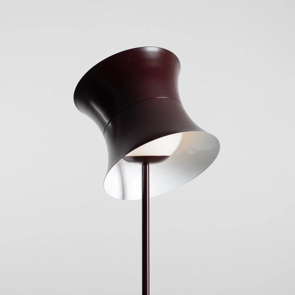 La lampada da terra Kibo Floor Maroon è un'interpretazione elegante ed espressiva di un classico, ispirata all'estetica delle lampade da terra degli anni '70. Il profondo colore marrone conferisce carattere al design e conferisce calore e un sottile tocco di lusso agli interni. Il caratteristico paralume in acciaio dalle proporzioni retrò è montato su un paralume sferico in vetro, creando un armonioso gioco di forme e materiali. Il paralume può essere posizionato liberamente, regolando la direzione della luce e modificando il carattere visivo della lampada, da un effetto più scultoreo a un funzionale effetto puntiforme. La base sottile e le linee semplici della struttura bilanciano il colore intenso e l'elaborata parte superiore della lampada. Questo rende la Kibo Floor Maroon perfetta sia per interni moderni che per interni ispirati al Mid-Century Modern, al Modern Classic, al Vintage o all'Art Déco.