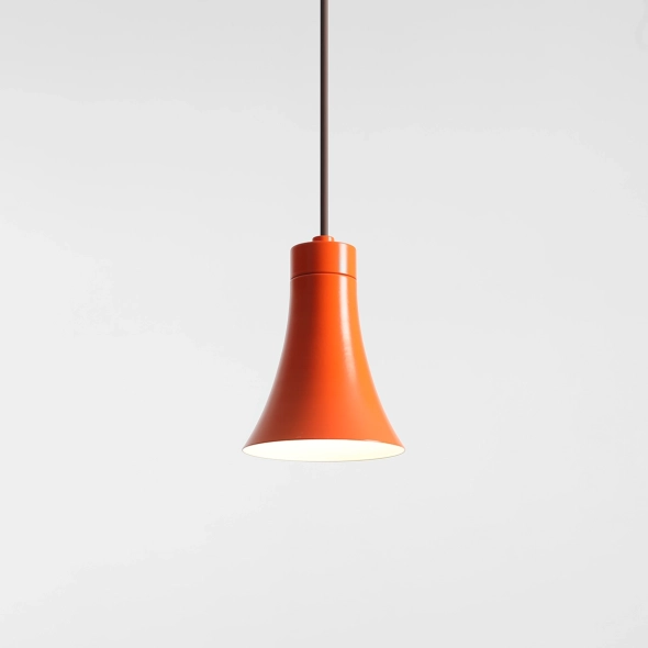 Una lampada a sospensione unica con paralume arancione, KIBO FLARE di Szpunar x Artera