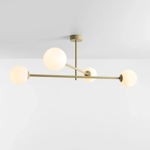 Lampa sufitowa Pinne to nowoczesne i funkcjonalne oświetlenie stworzone z myślą o niewysokich wnętrzach. Jej niska konstrukcja nie przytłacza przestrzeni, a rozłożysta forma pozwala równomiernie rozświetlić cały pokój, wprowadzając przyjemną atmosferę. Każde ramię lampy zakończone jest elegancką, mleczną szklaną kulą, wewnątrz której znajduje się wymienne źródło światła E14. Dzięki temu lampa jest nie tylko estetyczna, ale i praktyczna – umożliwia łatwą wymianę żarówki oraz dopasowanie barwy światła do własnych potrzeb. Subtelny, pistacjowy kolorsprawia, że lampa Pinne doskonale komponuje się zarówno z nowoczesnymi, jak i bardziej klasycznymi aranżacjami.
