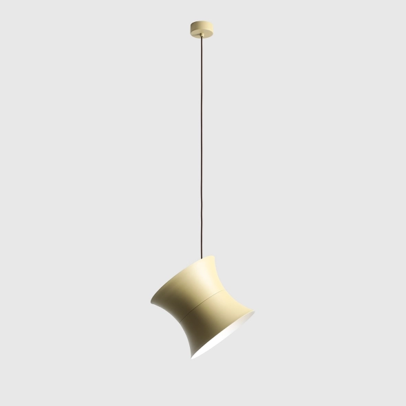 Metalowy klosz o średnicy 25 cm w pistacjowym kolorze skrywa biały, połyskujący klosz wewnętrzny o średnicy 16 cm, który równomiernie rozprasza światło i nadaje mu miękki charakter. Geometryczna forma i dopracowane proporcje nawiązują do estetyki retro w nowoczesnym wydaniu.