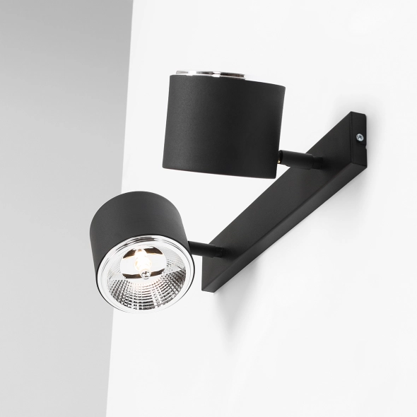 Kinkiet z serii Bot Black z dwoma reflektorami (żarówki sprzedawane oddzielnie) to stylowe i funkcjonalne oświetlenie o uniwersalnym, minimalistycznym charakterze. Metalowe klosze, osadzone na ruchomych przegubach, pozwalają precyzyjnie kierować światło w wybrane miejsca. Doskonale sprawdzi się jako oświetlenie strefy pracy, salonu lub korytarza, dodając wnętrzu elegancji i lekkości.