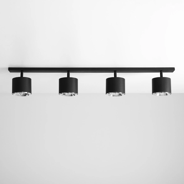 Nowoczesny plafon z serii BOT, posiadający cztery źródła światła (rozłożone regularnie na listwie). Każdy z reflektorów zamocowany jest na przegubie, umożliwiającym dowolne ustawienie kąta padania światła. Lampa nie narzucająca charakteru wnętrza, łącząca się z innymi lampami w pomieszczeniu. Dostępna w czerni i bieli. Żarówki stanowią integralne wypełnienie kloszy i są dostępne do dokupienia osobno. Zalecamy stosowanie żarówek z oznaczeniem AR111 na gwint GU10.